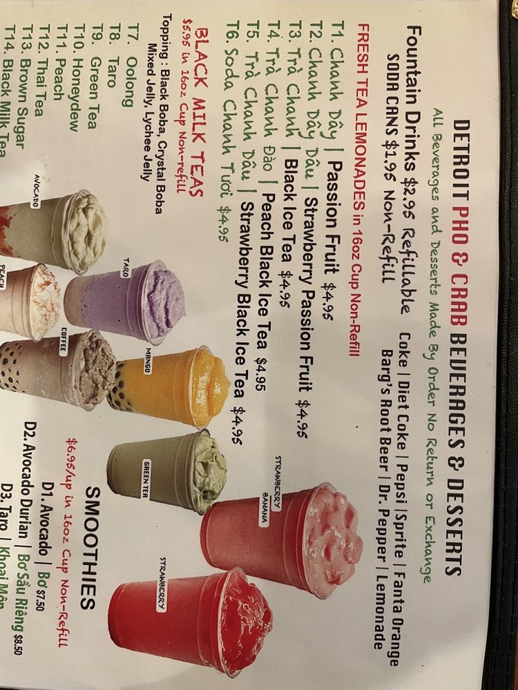 Detroit Pho & Crab is a trendy Vietnamese seafood bar in Warren, Michigan. Offering a wide range of appetizers like Egg Rolls, Crispy Dumplings, and Crab Rangoon, this spot caters to both meat lovers and vegetarians. Their Po'Boy sandwiches, including Shrimp, Lobster Tail, Chicken Breast, and Fish options, are a customer favorite. The Vermicelli Noodle dishes, such as Grilled Pork, House Special, and Grilled Chicken, are sumptuous and satisfying. Highly recommended by patrons for its fresh seafood, attentive service, and flavorful pho dishes, Detroit Pho & Crab is a top choice for those seeking authentic Vietnamese cuisine in the area. Don't miss out on their happy hour specials and outdoor seating options for a delightful dining experience.